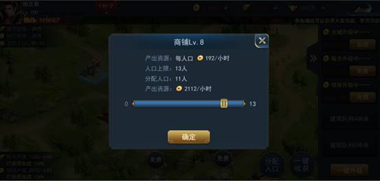 11级之后玩家将免费获得一块封地,在封地中可以建造各类建筑,商铺可以自动产出铜钱。升级商铺分配人口之后,铜钱产出量会变得更多,投资才会有回报,所以千万不要吝啬升级建筑的那一点点钱哦!