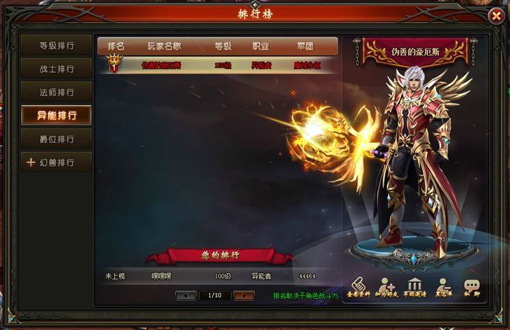 异能者排行:与战士排行规则一致;第一名可获得“第一异能”称号