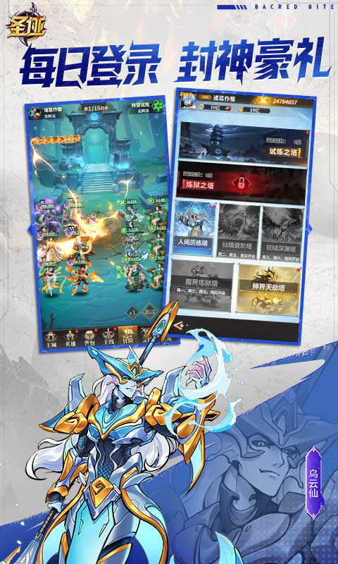 游戏介绍:《圣迹H5》是一款以封神题材为元素的休闲闯关、养成类游戏,游戏画风偏国风+科技,以封神故事和山海经为角色设计原型。整个游戏以“阵营对抗,收集神话英雄”为核心,结合简单的操作,让玩家在享受“收集神话角色”乐趣的同时激发玩家不断挑战更高难度的欲望。 《圣迹H5》是一款以封神题材为元素的休闲闯关、养成类游戏,游戏画风偏国风+科技,以封神故事和山海经为角色设计原型。整个游戏以“阵营对抗,收集神话英雄”为核心,结合简单的操作,让玩家在享受“收集神话角色”乐趣的同时激发玩家不断挑战更高难度的欲望。 开始玩